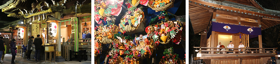 人々が集まるようになると門前市が開かれるようになり、「とのまち」「とりのまち」と称され、農耕具などが売られるようになります。これが後の「酉の市」の起源と言われています。