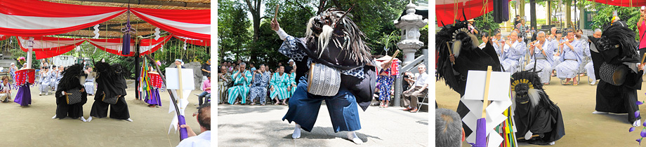毎年7月 海の日の前日に境内において、天下泰平・五穀豊穣・悪疫退散を願う獅子舞「祈祷獅子舞」が行われます。